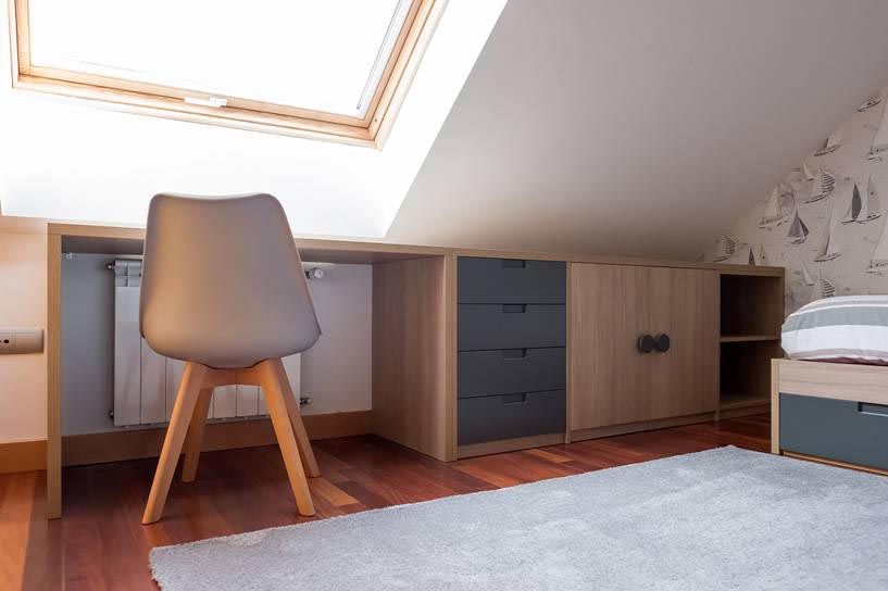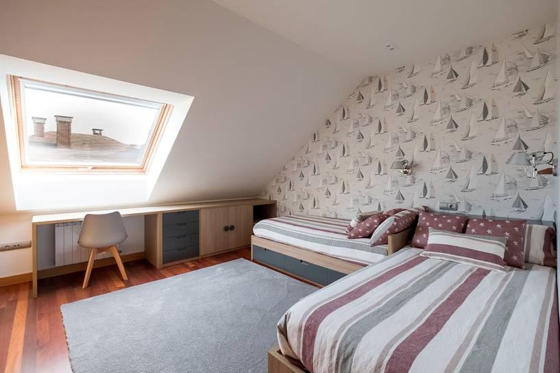 En esta ocasión se trata de un dormitorio infantil para dos ocupantes en un bajo cubierta muy acogedor de un piso en Gijón.
